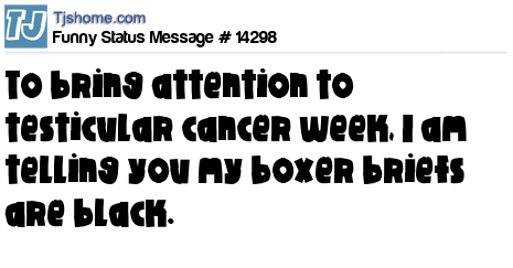 X To bring attention to testicular cancer week, I am telling you my boxer briefs are black.