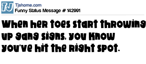 X says When her toes start throwing up gang signs, you know you've hit the right spot.
