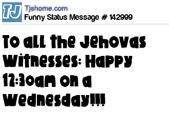 - # 120647 To all the Jehovas Witnesses: Happy 12:30am on a tuesday!!!