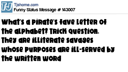 X says What's a pirate's fave letter of the alphabet? Trick question. They are illiterate savages whose purposes are ill-served by the written word