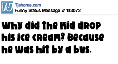 X says Why did the kid drop his ice cream? Because he was hit by a bus.