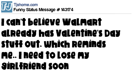 X says I can't believe Walmart already has Valentine's Day stuff out. which reminds me.. I need to lose my girlfriend soon
