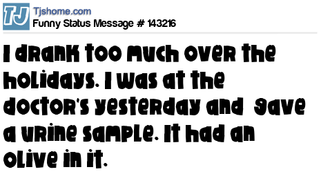 X I drank too much over the holidays. I was at the doctor's yesterday and gave a urine sample. It had an olive in it.
