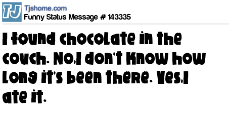 X says I found chocolate in the couch. No,I don't know how long it's been there. Yes,I ate it.