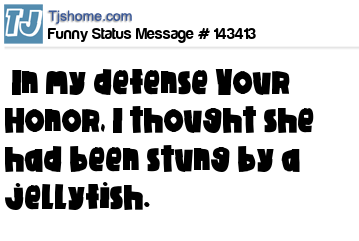 - # 143434 "In my defense Your Honor, I thought she had been stung by a jellyfish." - R. Kelly