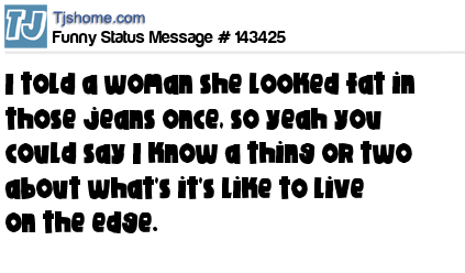 X says I told a woman she looked fat in those jeans once, so yeah you could say I know a thing or two about what's it's like to live on the edge.