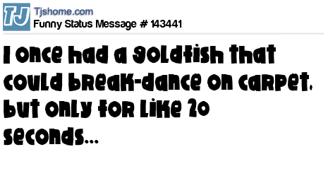 - # 149827 This one time, I had a goldfish that could totally break dance on my carpet..........but only for about 20 seconds...
