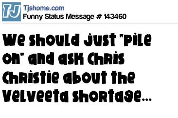 X  We should just "pile on" and ask Chris Christie about the Velveeta shortage...