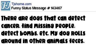 X says There are dogs that can detect cancer, find missing people, detect bombs, etc. My dog rolls around in other animals feces.