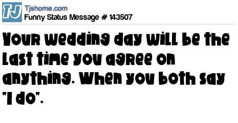 X says Your wedding day will be the last time you agree on anything. When you both say "I do".