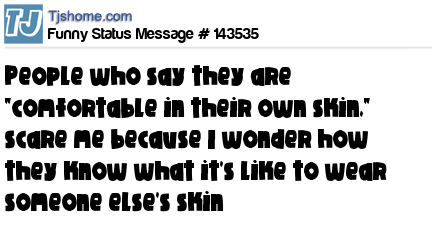 X says People who say they are "comfortable in their own skin," scare me because I wonder how they know what it's like to wear someone else's skin