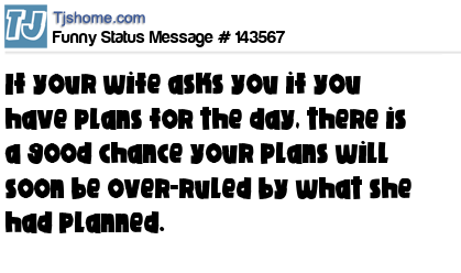 X says If your wife asks you if you have plans for the day, there is a good chance your plans will soon be over-ruled by what she had planned.