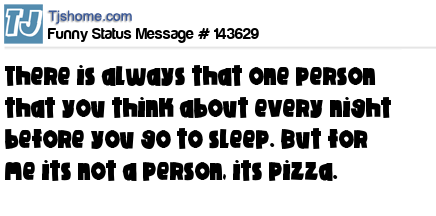 X says There is always that one person that you think about every night before you go to sleep. But for me its not a person, its pizza.