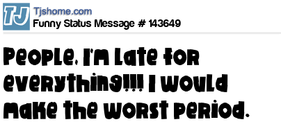 X People, I'm late for everything!!! I would make the worst period.