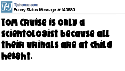 X says Tom Cruise is only a scientologist because all their urinals are at child height.
