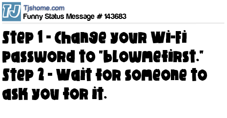 - # 166746 Step 1 - Change your Wi-Fi password to "blowmefirst." Step 2 - Wait for someone to ask you for it.