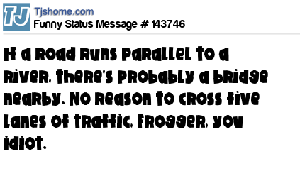 X says If a road runs parallel to a river, there's probably a bridge nearby. No reason to cross five lanes of traffic, Frogger, you idiot.