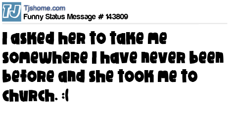 X says I asked her to take me somewhere I have never been before and she took me to church. :(