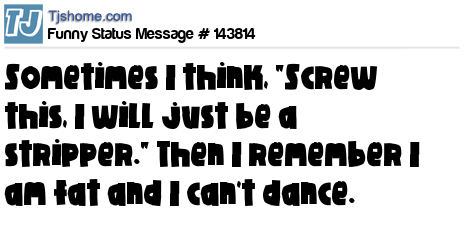 X says Sometimes I think, "Screw this, I will just be a stripper." Then I remember I am fat and I can't dance.