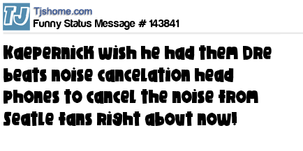 X says Kaepernick wish he had them Dre beats noise cancelation head phones to cancel the noise from Seatle fans right about now!
