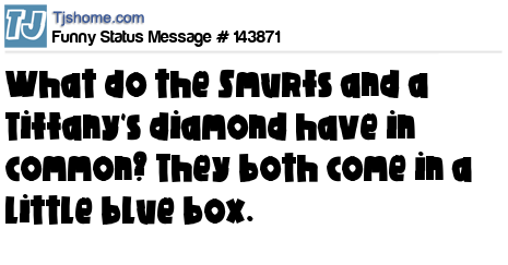 - # 132697 What do the Smurfs and a Tiffany's diamond have in common? They both come in little blue boxes.