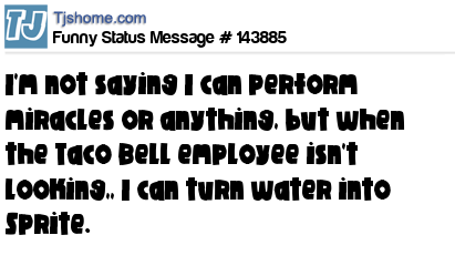 X I'm not saying I can perform miracles or anything, but when the Taco Bell employee isn't looking,, I can turn water into Sprite.