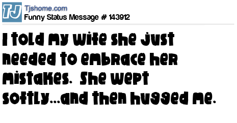 - # 207061 I told my wife she has to embrace her mistakes. So she hugged me.