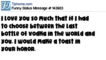 X says I love you so much that if I had to choose between the last bottle of vodka in the world and you, I would make a toast in your honor.
