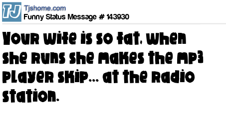X says Your wife is so fat, when she runs she makes the mp3 player skip... at the radio station.