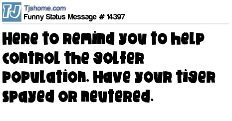 X is here to remind you to help control the golfer population. Have your tiger spayed or neutered.