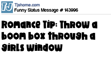 X says Romance Tip: Throw a boom box through a girls window