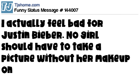 X says I actually feel bad for Justin Bieber. No girl should have to take a picture without her makeup on