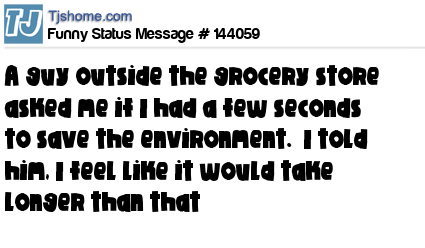 X A guy outside the grocery store asked me if I had a few seconds to save the environment. I told him, I feel like it would take longer than that