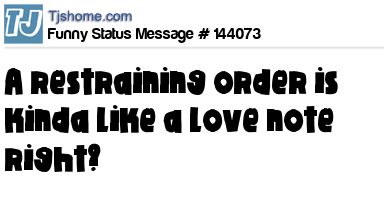 - # 112310 I know you love me baby. I know. Which is why I got this restraining order on your ass.