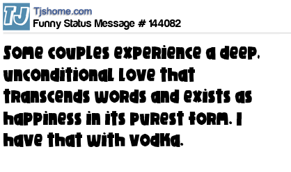 X says Some couples experience a deep, unconditional love that transcends words and exists as happiness in its purest form. I have that with vodka.