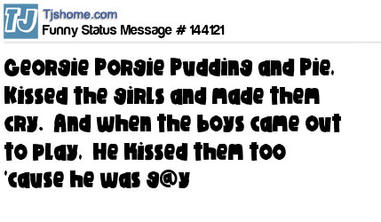 X says Georgie Porgie Pudding and Pie, Kissed the girls and made them cry. And when the boys came out to play, He kissed them too 'cause he was g@y