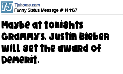 X Maybe at tonights Grammy's, Justin Bieber will get the award of Demerit.