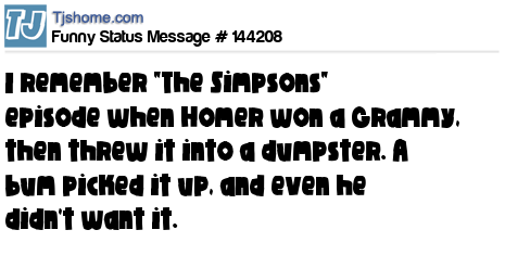 X says I remember "The Simpsons" episode when Homer won a Grammy, then threw it into a dumpster. A bum picked it up, and even he didn't want it.