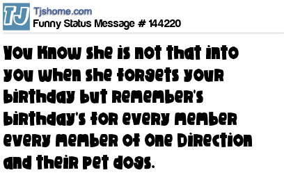 X says You know she is not that into you when she forgets your birthday but remember's birthday's for every member every member of One Direction and their pet dogs.