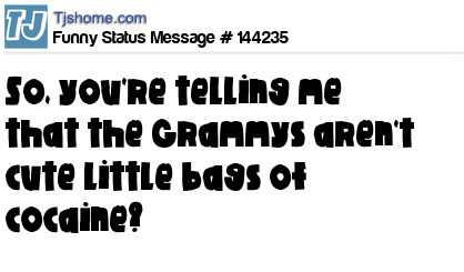 X says So, you're telling me that the Grammys aren't cute little bags of cocaine?