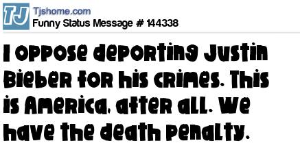X says I oppose deporting Justin Bieber for his crimes. This is America, after all. We have the death penalty.