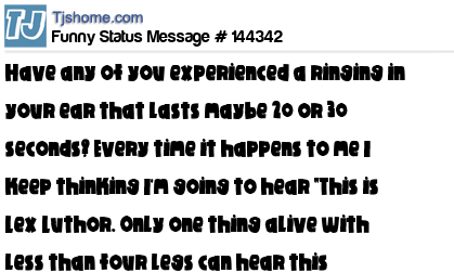 X says Have any of you experienced a ringing in your ear that lasts maybe 20 or 30 seconds? Every time it happens to me I keep thinking I'm going to hear "This is Lex Luthor. Only one thing alive with less than four legs can hear this frequency Superman and that