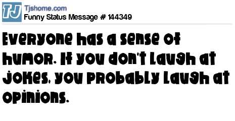 X says Everyone has a sense of humor. If you don't laugh at jokes, you probably laugh at opinions.