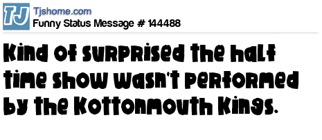X Kind of surprised the half time show wasn't performed by the Kottonmouth Kings.