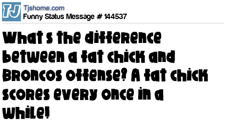 X  What’s the difference between a fat chick and Broncos offense? A fat chick scores every once in a while!