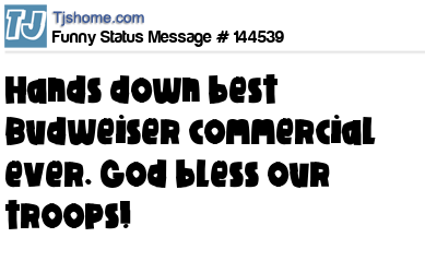 X says Hands down best Budweiser commercial ever. God bless our troops!