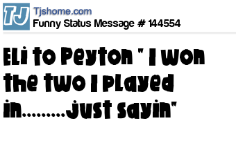 X says Eli to Peyton " I won the two I played in.........just sayin"