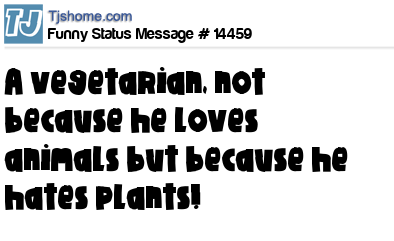 X is a vegetarian, not because he loves animals but because he hates plants!