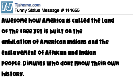 X says Awesome how America is called the Land of the free yet is built on the anhilation of American Indians and the enslavement of African and Indian people. Dimwits who dont know their own history.