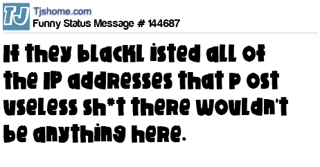 X says If they blackl isted all of the IP addresses that p ost useless sh*t there wouldn't be anything here.